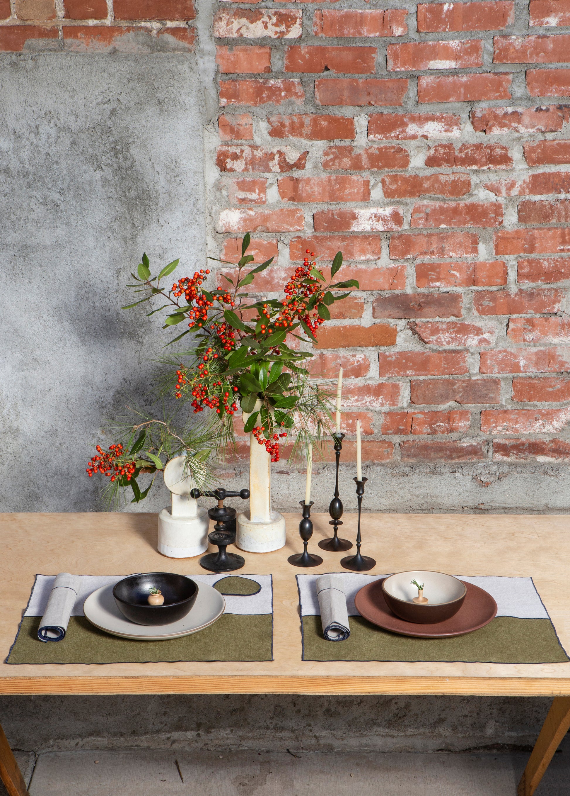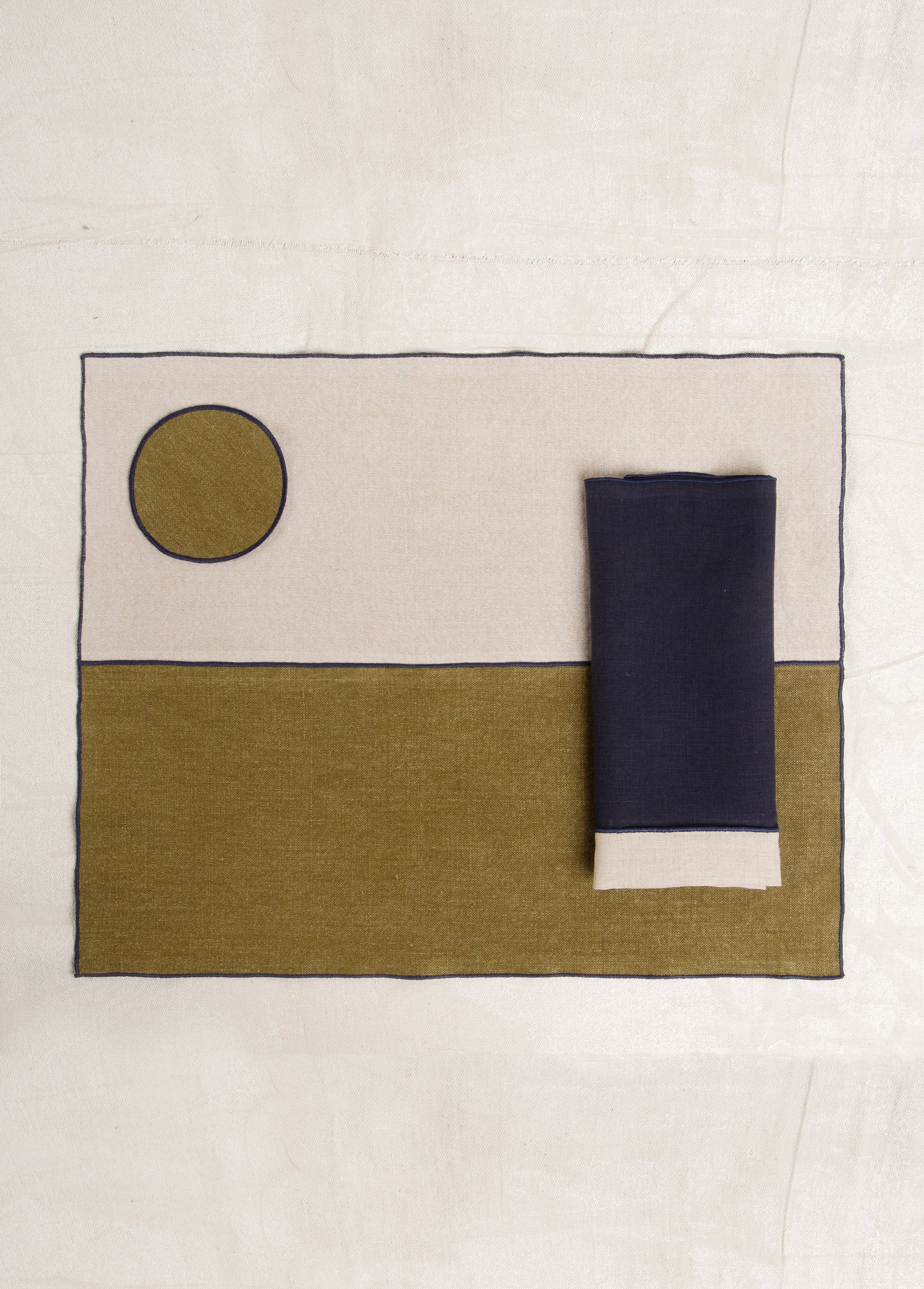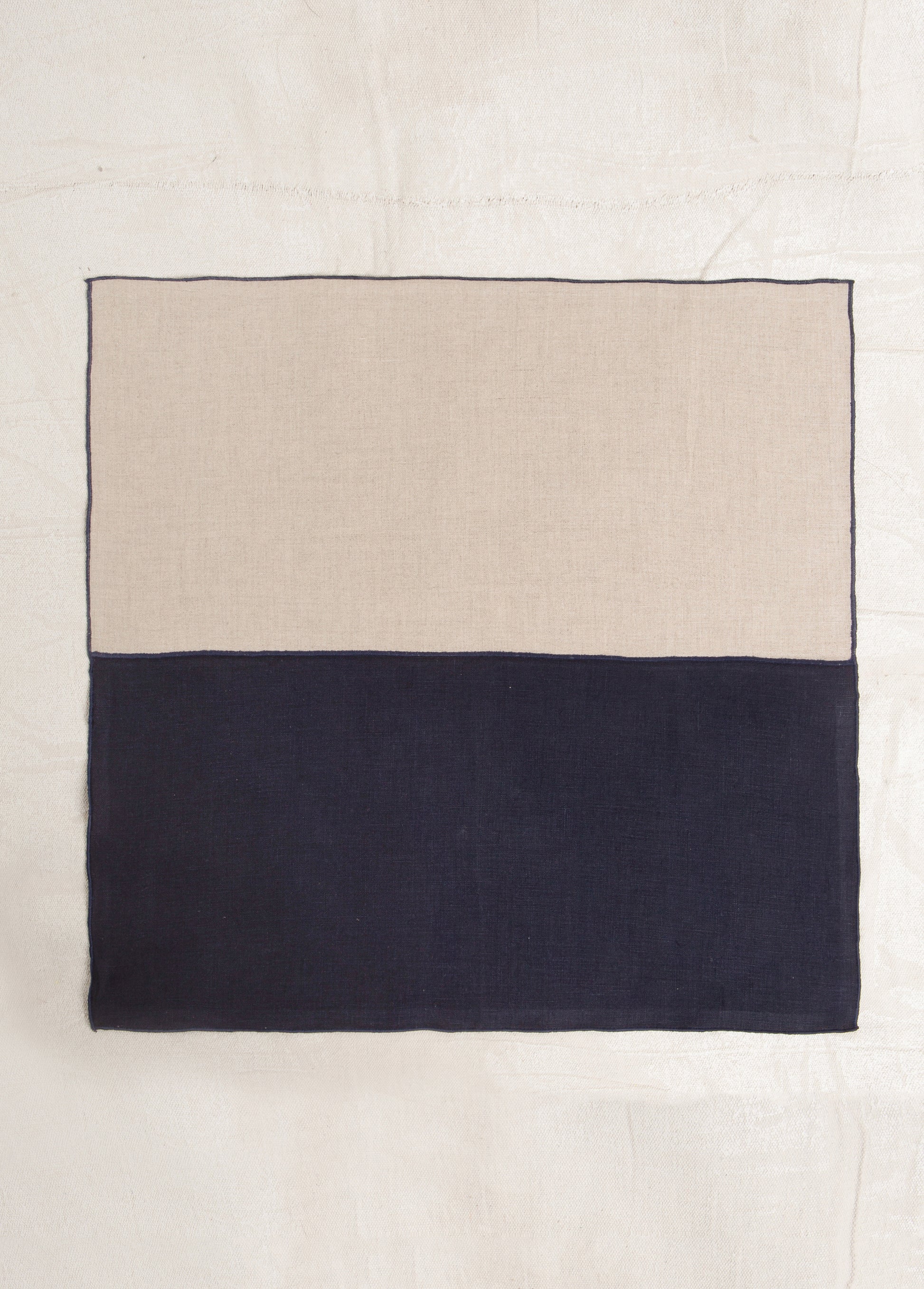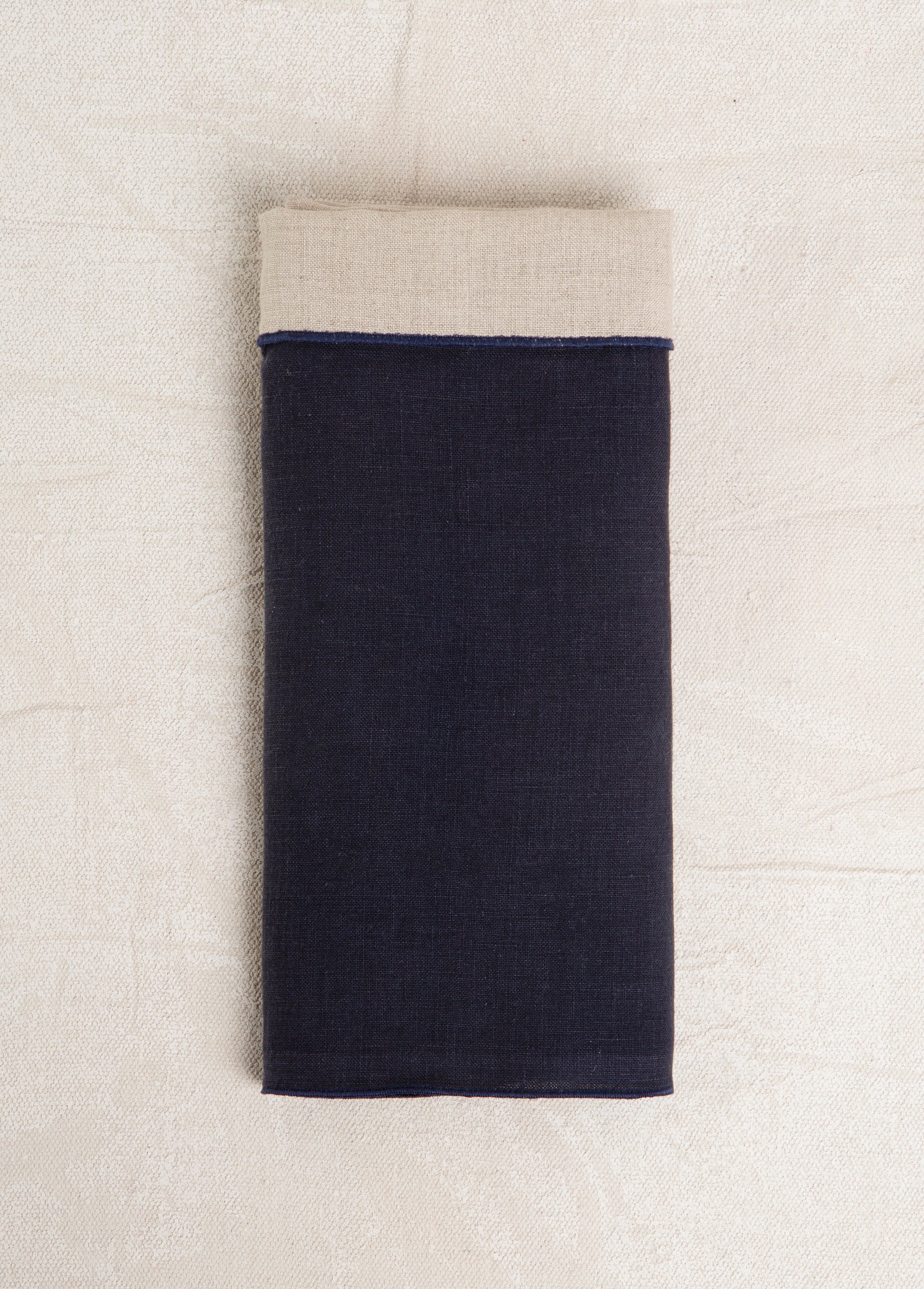 Two tone medium weight linen napkin with signature marrow stitching. Made from a 100% clean crop Belgian linen, made to last. Clean crop farming supports, regional fair labor, clean water and healthy soil.