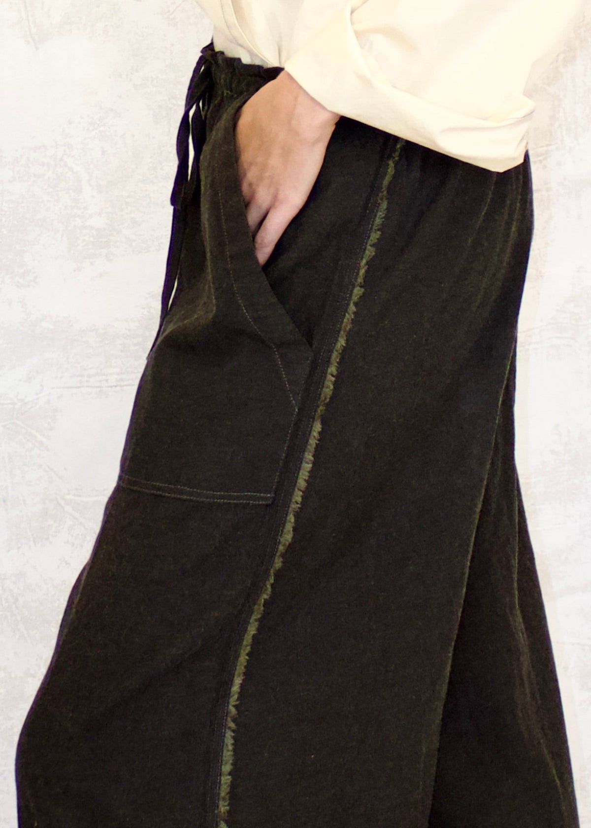 Created in response to Pickers Pant lovers asking for a longer version, these wide-leg pants keep the same relaxed ease with added length. Sewn in soft cotton/rayon flannel with an adjustable drawstring-and-elastic waistband, selvedge detail on the left side, and front craft pockets with signature stitching. Pair them with our Agnes or Artist shirts — or even an old tee.
