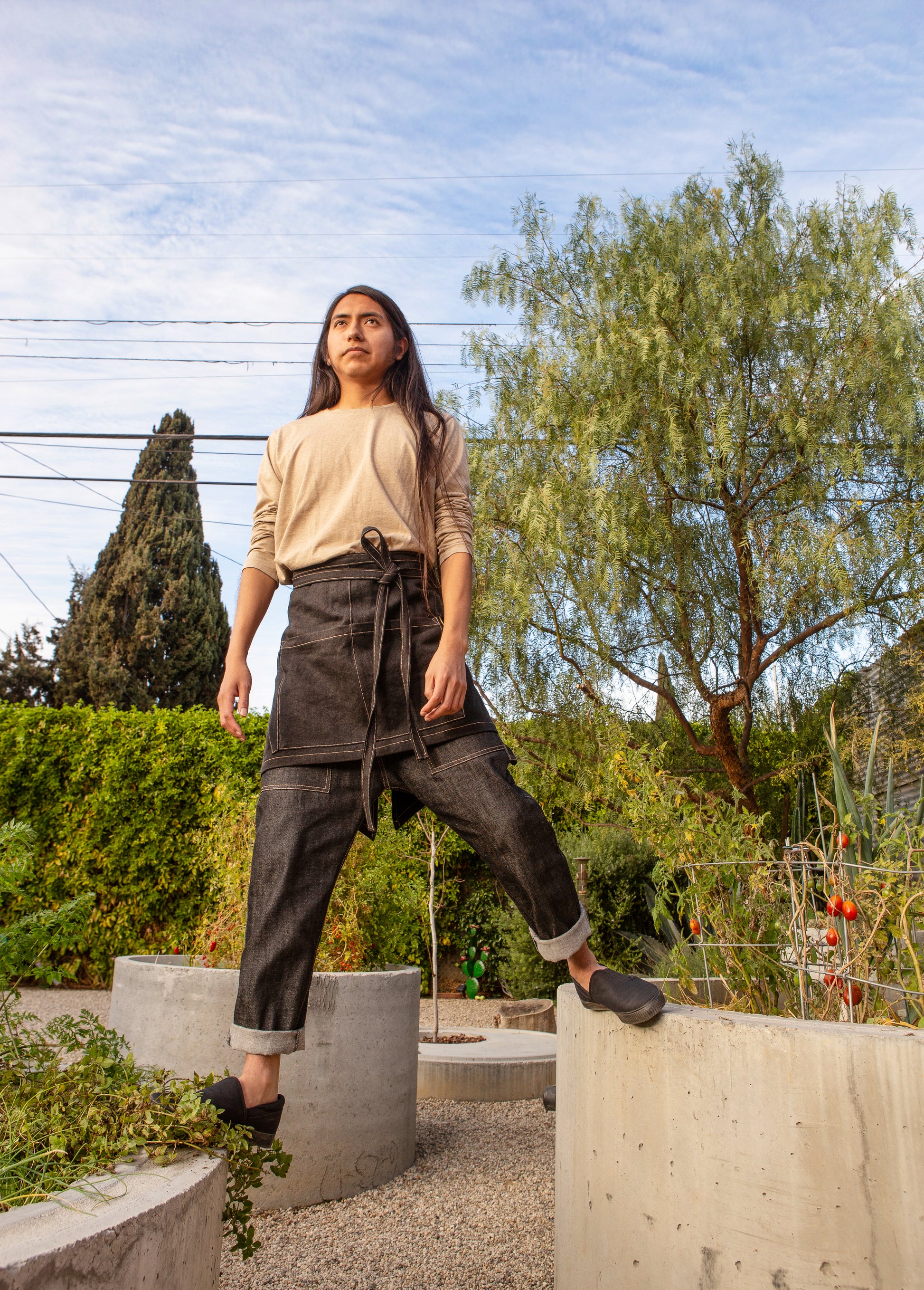 Utility and comfort makes this unisex pant our go-to. Made in 100% GOTS certified organic denim, we love wearing them with a simple white tee, layered together with our Harvest Poncho, or with our Field Shirt and Workers Coat. Slightly cropped with a relaxed fit for maximum comfort. Two generous front pockets, 2 back pockets and one side pocket with utility loop. Zip front and elastic in back waist. Organic cotton farming supports, regional fair labor, clean water and healthy soil.